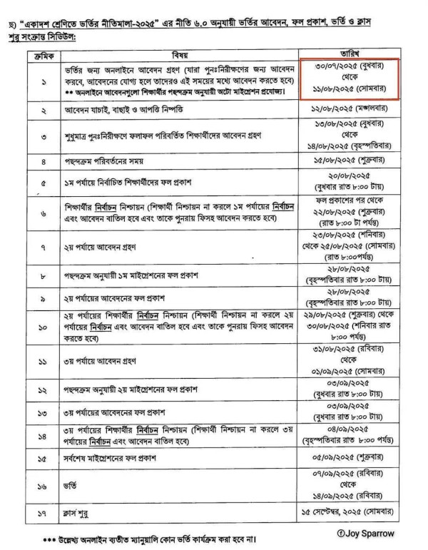 প্রচ্ছদ / একাদশ শ্রেণিতে ৩য় ধাপের আবেদন ৩১ আগষ্ট ২০২৫ খ্রি.