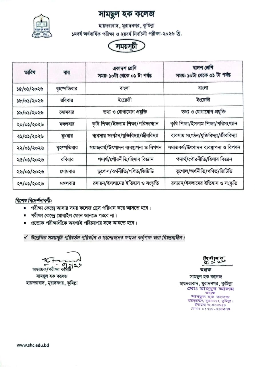 প্রচ্ছদ / ১মবর্ষ অর্ধবার্ষিক পরীক্ষা ও ২য়বর্ষ নির্বাচনী পরীক্ষা-২০২৬ খ্রি. এর সময়সূচি...